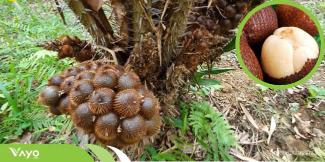 ไม่มีลำต้น ใบแตกจากผิวดินใบเดี่ยว แผ่ยาวถึง 4 เมตร แผ่นใบพับจีบ ปลายใบรูปหางปลา และมีหนามแหลมปกคลุมตามเส้นกลางใบจำนวนมาก ก้านใบยาว 1 – 2 เมตร ช่อดอก สมบูรณ์เพศ ออกระหว่างกาบใบ ยาว 30 เซนติเมตร