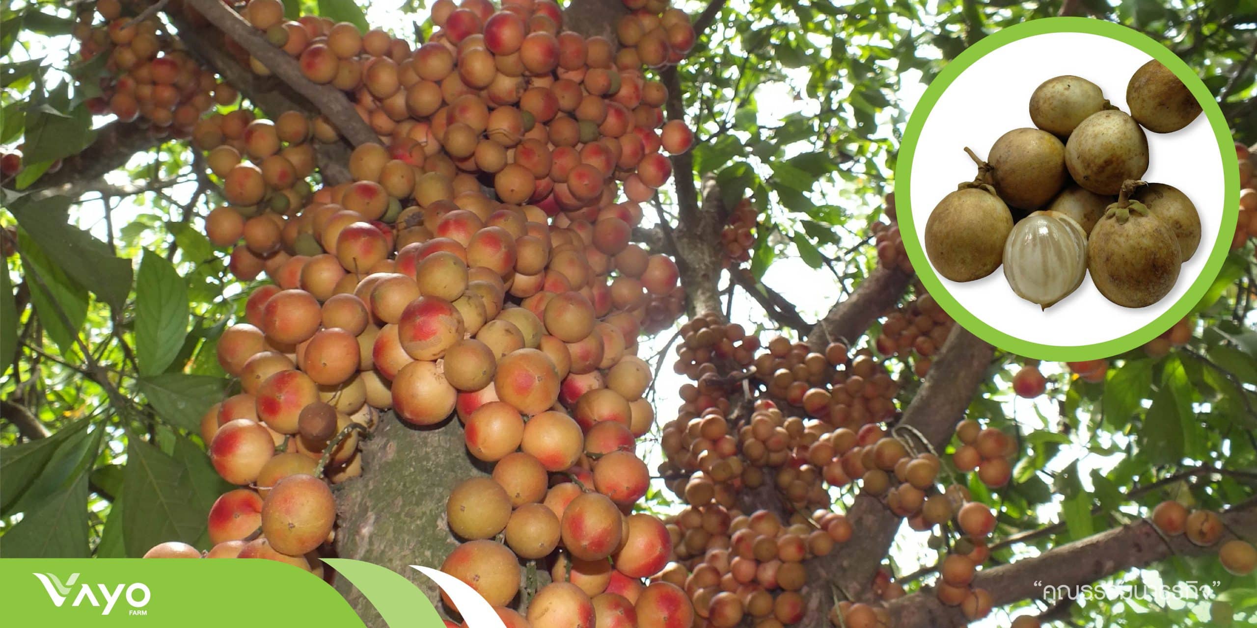 - ผล ออกเป็นพวงช่อยาว ผลใหญ่กว่ามะไฟ มีลักษณะทรงกลมรี มีขั้วจุกชัดเจน ผิวเปลือกหนา ผลอ่อนมีขนคล้ายกำมะหยี่มีสีเขียว เมื่อผลสุกจะผิวเกลี้ยงไม่มีขน มีสีน้ำตาลอ่อน ภายในผลจะมีเนื้อเป็นกลีบเล็ก เนื้อฟูนุ่มฉ่ำน้ำ มีสีขาว มีรสชาติเปรี้ยวอมหวาน มีกลิ่นหอม มีเมล็ดสีน้ำตาลแบนรูปไข่ อยู่ข้างในเนื้อกลีบ ออกผลเดือนกันยายน – ตุลาคม