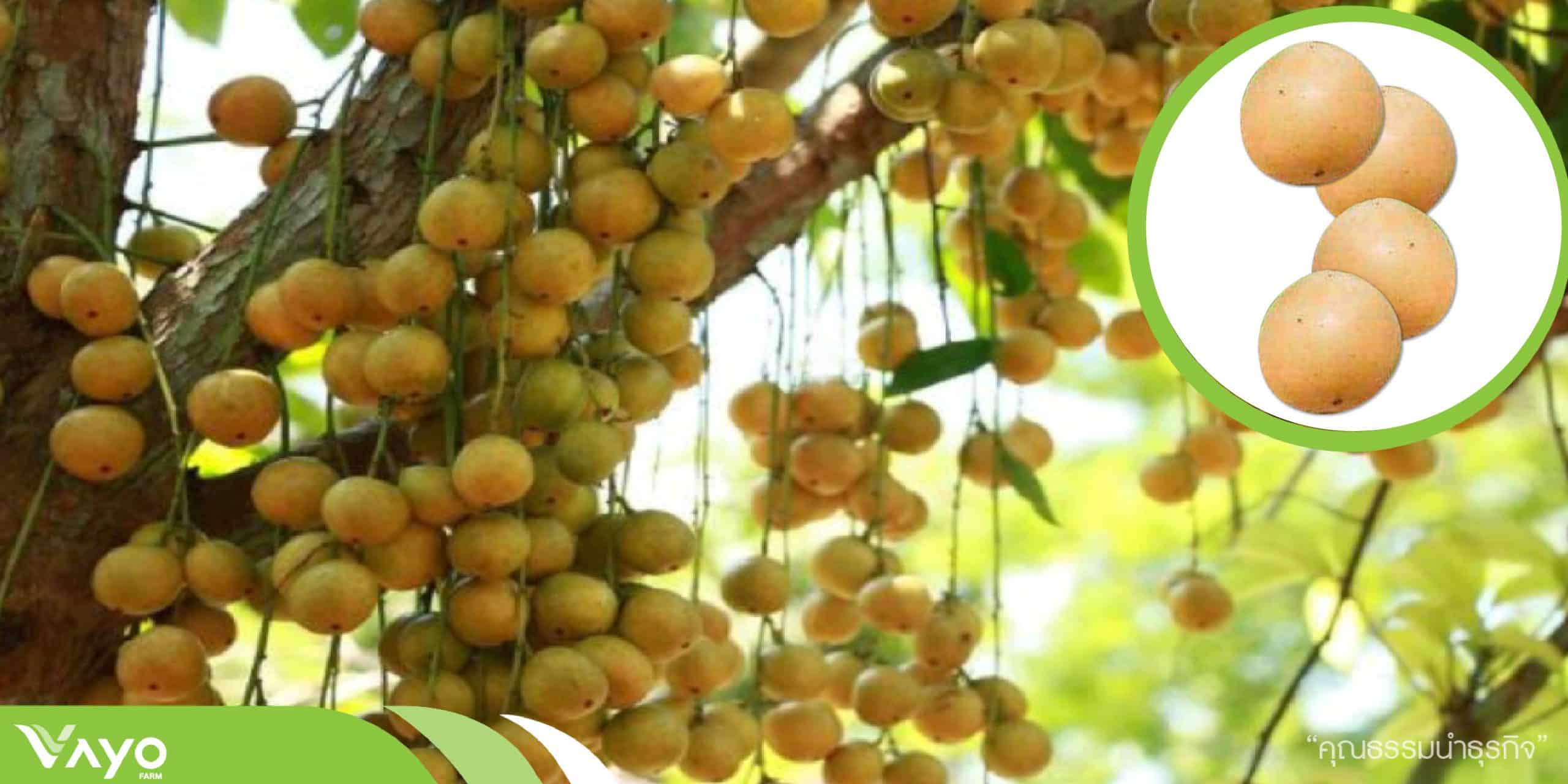 - ผลออกเป็นช่อ เปลือกสีเหลือง เนื้อสีขาวขุ่น เมล็ดแบนสีน้ำตาล ผลใหญ่ ก้นเรียบ มี 2-4 กลีบ ฉ่ำน้ำ